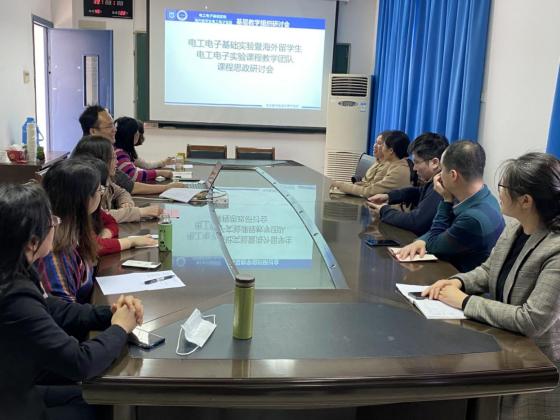 4月23日下午,电子与光学工程学院基层教学组织“海外留学生电工电子实验课程教学团队”在教三320(电工电子实验中心会议室)举行了一场电子信息类实验实践课程思政教学研讨会。教学团队负责人孙科学教授及基层教学组织12名骨干教师参加了本次研讨活动。