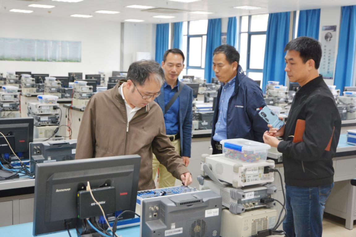 最后,程勇副院长带领来访老师参观了专业实验室和电工电子实验教学中心,来访的同行认为我校电工电子实验教学中心的工作经验值得借鉴,并对大学生创新创业工作的组织模式表示赞赏。