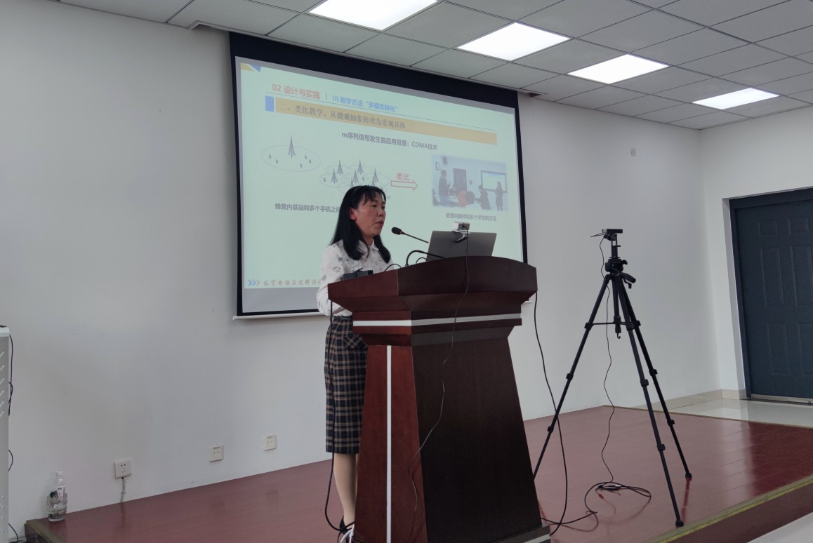 我校贝尔英才学院院长黄丽亚教授也向与会教师总结分享了自己的教学经验,在会中做出“课程建设与教材建设经验报告”总结汇报。汇报内容结合黄老师自身教学经验,对书本知识与实践操作的重要程度做出分析,总结指出,学校应提供相应条件,更加积极的为学生创造出便捷的电子信息类实验的条件,从而提高学生动手实践的积极性。并向与会人员展示了我校自研的便携式电路实验板,该板可连接电脑等设备,更加方便学生的实践学习。另外,黄老师在会议上展示了自动化的试卷编辑器,从而能够侧重点更加明确地考察学生掌握理解情况。最后,黄丽亚老师对于模电、数电、电路分析等教材地融合改编做出展望,冀望更加完善、贯通的新型地电子信息类教材。