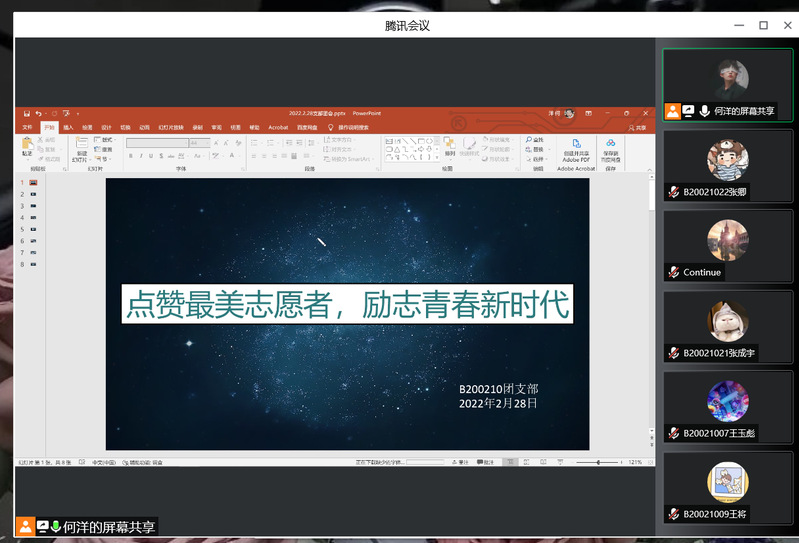 团日活动中,在寒假参与抗疫志愿服务的同学们通过讲实践故事、说所见所闻、谈心得体会等方式,用身边的人讲出身边的故事,用身边的故事教育身边的人,他们不仅表达了作为抗疫志愿者的艰辛与自豪,也展现出青年志愿者积极向上、阳光开朗的一面,在学院中营造了“人人爱志愿、人人做志愿”的生动局面。