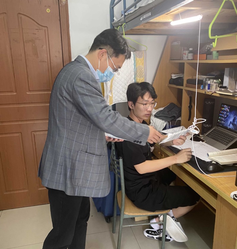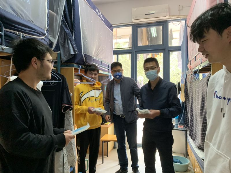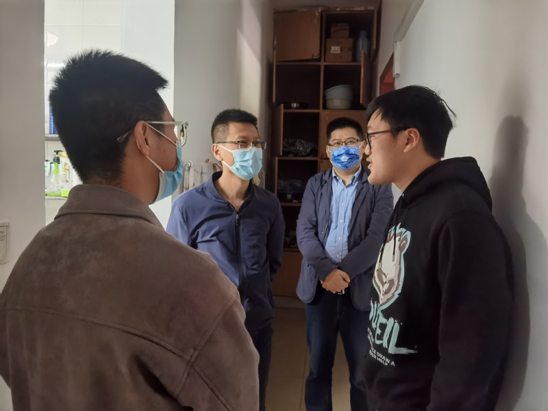 赵强院长走访慰问了2020级本科生,他希望同学们自觉遵守学校疫情防控规定,严格落实健康日报制度,做好宿舍卫生保洁,勤通风、勤洗手、不串门,出门全程佩戴口罩,就餐注意安全距离;同时要以饱满的热情上好每一节线上课程,积极与老师互动交流,保证线上上课的学习效果,课间劳逸结合,适当户外体育运动,保持阳光、积极、健康的心态。