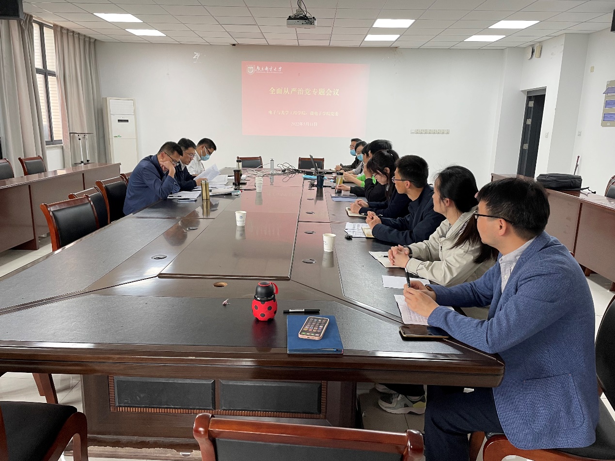5月11日上午,我院召开全面从严治党专题会议,学院党政领导班子成员、院长助理、科职干部、党委组织员、党风联络员、特邀监察员等参加会议,会议由院党委书记毛建平主持。
