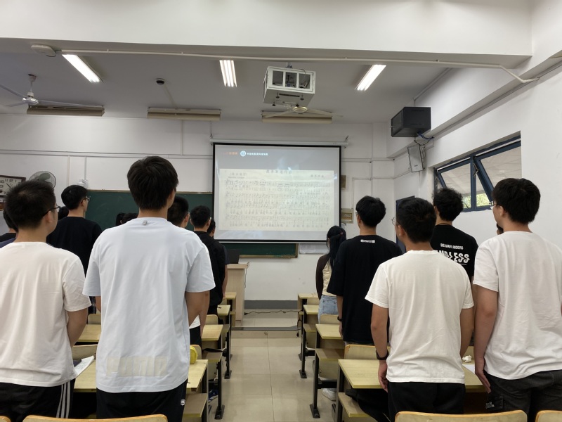 会议伊始,全体同志起立奏唱中华人民共和国国歌,在歌声中体会初心使命。支部书记祝腾老师说到,今天是国家烈士纪念日,祖国的和平与富饶、民族的独立与复兴,离不开英雄的奋斗与奉献,我们应铭记历史、不忘英雄。她还表示,党的二十大即将召开,大家都满怀期待,各位党员同志应不忘初心,勇于担当,以实际行动来迎接党的二十大胜利召开。随后通过观看相关视频,同志们对于革命先烈们的伟大贡献有了更深刻的体会。接着,以中国共产党的历次全国代表大会为主线,结合时代背景、重要会议等各个历史时期的实践探索,全体与会同志一起深入学习了中国共产党的光辉历史。最后,强增寿老师发言,他说全体党员同志们应该坚定理想信念,增强担当意识和服务意识,积极行动起来,将初心使命融入日常、见于行动。