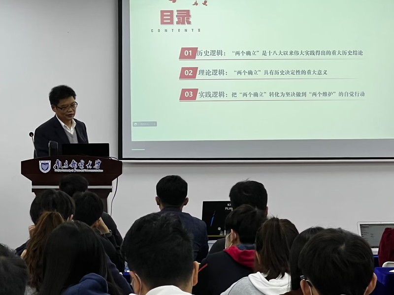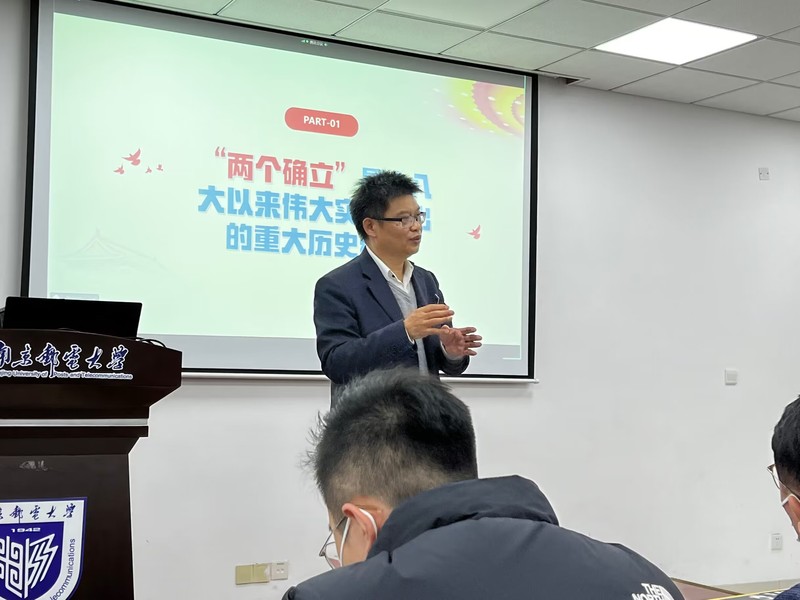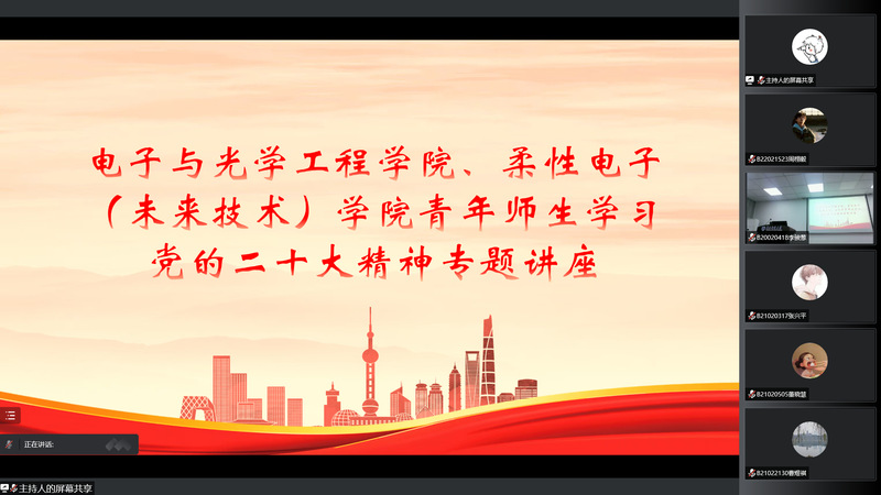 为引导学院师生深入学习贯彻党的二十大精神,11月23日下午,南京邮电大学马克思主义学院党委书记沈召前教授为电光柔院青年师生作题为“深刻把握‘两个确立’,坚决做到‘两个维护’——二十大精神学习”的报告。本次报告会在线上线下同步进行,线下于木瓜视频 电光学科楼B322会议室开展。学院全体辅导员老师、学生党员代表、木瓜视频 第140期菁英人才全体学员参会。