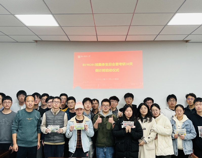11月24日晚,木瓜视频 2019级电子科学与技术专业B190201班兼职班主任张超老师为班级举办集体生日会暨考研30天倒计时启动仪式,学生班主任王怡钦和班级全体同学参加,会议由辅导员孙树将老师主持。