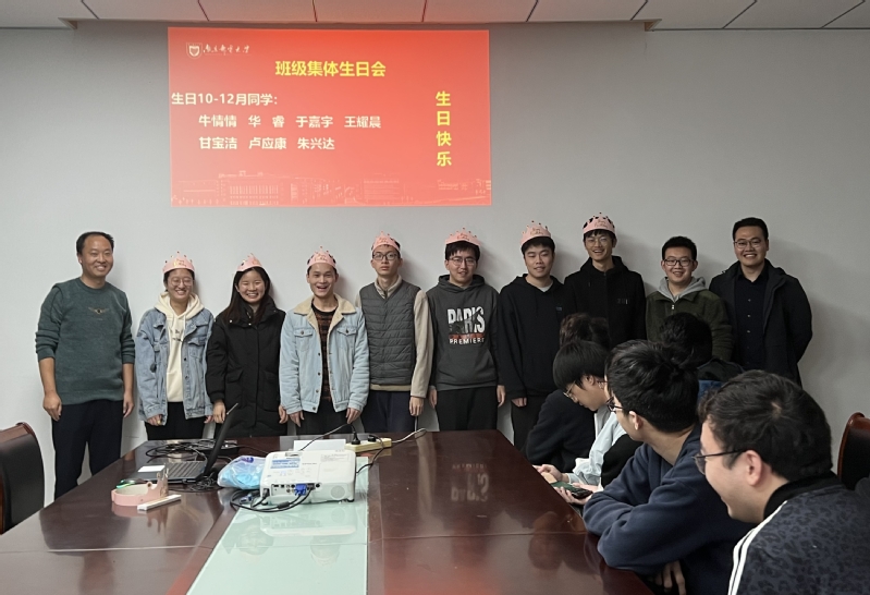 在班级集体生日会上,张超老师为班级中出生于10-12月的7位同学精心准备了精美的生日蛋糕和生日礼物。在张超老师和孙树将老师的组织带领下,过生日的7位同学戴上生日帽、点燃生日蜡烛、许下生日愿望、师生共唱生日歌,最后大家在一片欢声笑语中分享生日蛋糕。整个集体生日会洋溢着满满的仪式感和幸福感,为全班同学留下了美好的大学记忆。