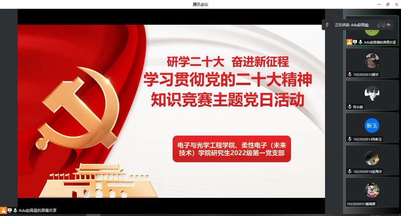 为深入学习贯彻党的二十大精神,引导研究生青年学子坚定不移听党话、跟党走,弘扬爱国之心,筑牢信仰之基。12月1日晚,木瓜视频 研究生2022级第一党支部开展“研学二十大 奋进新征程”学习党的二十大精神知识竞赛主题党日活动,支部全体成员和支部书记赵雨晨同志参加。