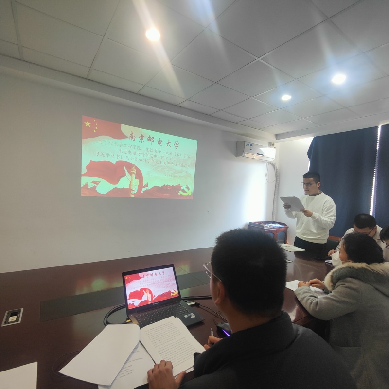 组会由学院电子科学与技术系支部党员陈丽敏同志主持,会上,学生入党积极分子韦超同学领学了习近平总书记讲话内容。习近平总书记强调,要强化基础研究前瞻性、战略性、系统性布局。习近平总书记指出,我国几代科技工作者通过接续奋斗铸就的“两弹一星”精神、西迁精神、载人航天精神、科学家精神、探月精神、新时代北斗精神等,共同塑造了中国特色创新生态,成为支撑基础研究发展的不竭动力。要在全社会大力弘扬追求真理、勇攀高峰的科学精神,广泛宣传基础研究等科技领域涌现的先进典型和事迹,教育引导广大科技工作者传承老一辈科学家以身许国、心系人民的光荣传统,把论文写在祖国的大地上。课题组全体研究生依次谈了学习习近平总书记重要讲话精神的感悟。其中,杨铖同学表示决心在科研工作中更加努力刻苦细心,绝不辜负习近平总书记对新时代青年的期望;牢记自己是“早晨八九点钟的太阳”,必须要保持勇气锐气朝气,主动担负起历史使命和人民重托,自觉用闪亮的青春,点燃新时代的希望之光。其他同学也纷纷表示要为新时代中国特色社会主义的科技发展贡献自己的力量。