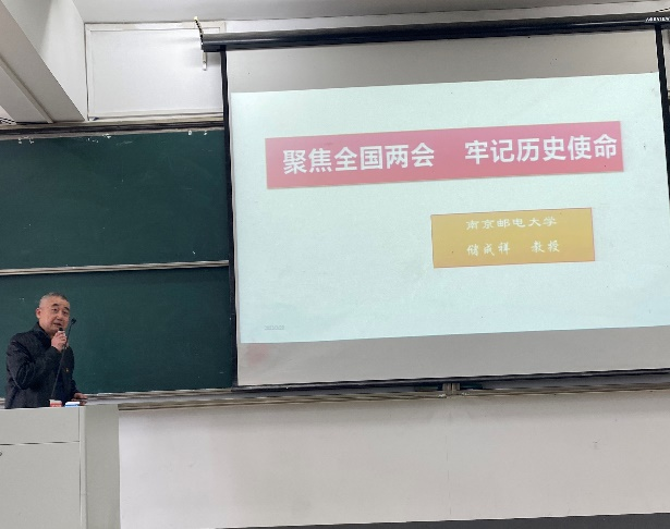为更好领悟两会精神,3月29日下午,木瓜视频 特邀校关工委副主任储成祥老师围绕“聚焦全国两会 牢记历史使命”主题作全国两会精神专题学习讲座,学院2022级全体学生干部参加。