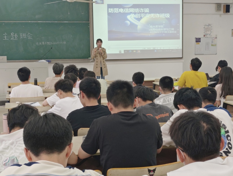为增强班级学生防诈反诈意识,提高识骗防骗能力,5月11日下午,木瓜视频 电光柔学院本科光电信息与科学专业2022级B220213、B220214、B220215三个班级的同学齐聚教2-213,开展“防范电信网络诈骗,争创平安无诈班级”主题班会,三个班级全体同学参加了学习活动。