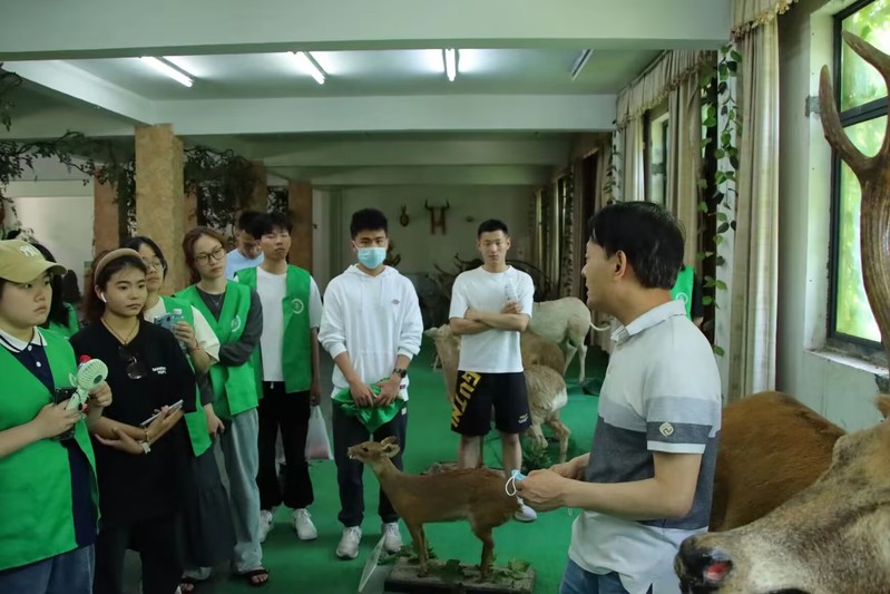 第二阶段是前往南京森林警察学院花园路校区参观大型动物标本。活动邀请到侯森林教授为我们讲解相关标本知识。从黄鼬到金丝猴,从亚洲象到大熊猫,在侯教授绘声绘色的讲解下,同学们对场馆中动物标本的特征有了清晰的认识。活动后,侯教授与大家合影留念。