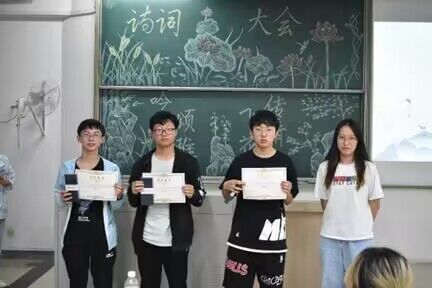 本次比赛分为初赛和决赛,难度节节攀升。选手们临危不乱,在面对乱序九宫格时,分秒必争又精准对答;伴随飞花令主题字:春、梦、花、月、夜、愁,比赛层层推进,赛况越演越烈,6位同学突出重围,晋级决赛。决赛时,面对飞花令除主题字外的加分字,选手们在短短时间内头脑高速运转、搜刮肚中墨水,力争加分,勇夺第一。不论是耳熟能详的词句,还是鲜为人知的诗词,选手们一一将其说出,一句“和风和雨点苔纹,漠漠残香静里闻”震惊四座。最后,冠军选手一骑绝尘引得四座掌声惊起,比赛完美落幕。