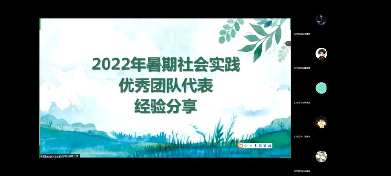 往届获得暑期社会实践表彰的优秀团队代表进行了经验分享。高洁同学代表“青春邮画”志愿服务团队从团队组成、活动开展、活动设计、新闻稿撰写和新闻发布等方面进行分享;何书源同学代表“水果大作战”团队从队伍组成、活动设计、调研报告撰写、活动视频制作、时间进度安排等方面,为马上要进行社会实践的队伍贡献出宝贵经验。