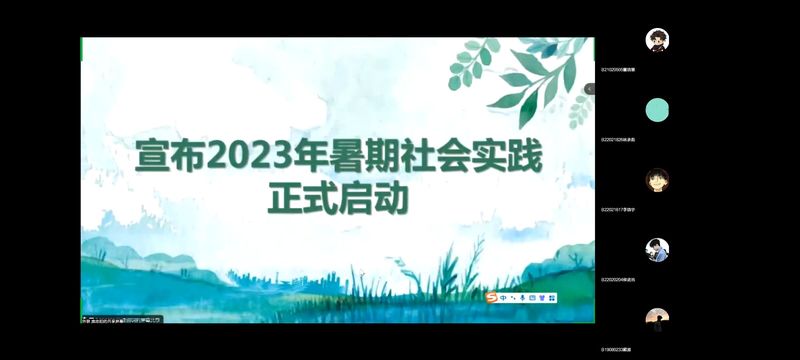 7月6日上午10点,木瓜视频 召开“‘奋斗正当时!’2023年暑期社会实践动员大会暨启动仪式”,学院党委副书记、副院长徐磊,分团委书记肖俊桂以及2021级、2022级辅导员老师受邀出席,各实践队队长参加会议。会议以线上形式进行。
