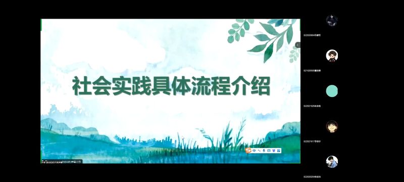 接下来,外联部部长储跃潘扬进行社会实践具体流程介绍。他先后从项目介绍、材料提交、评奖评优以及注意事项等方面为同学们介绍了社会实践活动的流程和具体事项。最后,主持人贾逍玥宣布2023年暑期社会实践正式启动。