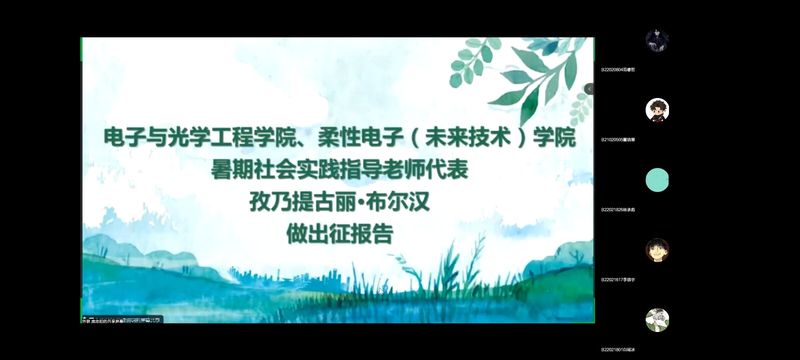 随后,本次暑期社会实践指导老师代表孜乃提古丽·布尔汉老师做出征报告,她具体指出了目前提交的实践报告中存在的一些问题,从多方面进行细节的指导,进一步完善社会实践的过程,也为全体同学提出了宝贵的建议。