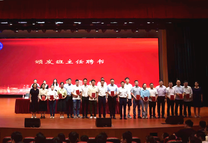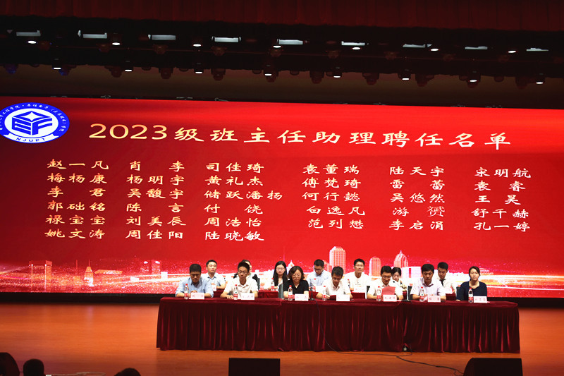 会上,学院还隆重举行了班主任、班主任助理聘任仪式,学院党委书记毛建平教授郑重宣读了学院2023级新生班主任、班主任助理聘任决定,与会校、院领导为班主任、班主任助理们颁发聘书。典礼当日正值教师节,现场全体同学自发起立,齐声高呼“老师,节日快乐!”,新生代表更是走上台前,为现场的领导、老师们送上鲜花,以表祝福。