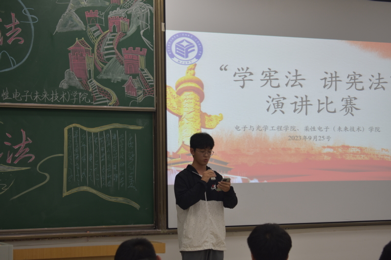 参加决赛的8位选手都是各班级的精英代表,他们精心准备后胸有成竹、蓄势待发。本次比赛采取以个人为单位,伴随着主持人详细介绍比赛规则之后,第一位选手龚超,用铿锵有力的演讲,充满激情、富有活力,表达了他对宪法的热爱和拥护。第二位上场的吴迪同学,以“宪启万民,法兴国邦”为题目,她结合党的二十大讲述中国特色社会主义的优势等,再由此展开对宪法的意义、重要性的讲述,倡导同学们学习宪法,遵守宪法并表达了她对宪法的赞颂……在比赛中,选手们围绕“学宪法·讲宪法”这一主题,结合自身实际,从不同角度阐述了宪法的重要性和意义。他们有的讲述了自己在日常生活中如何遵守宪法,有的阐述了宪法的原则和精神如何指导自己的学习和生活。选手们的演讲内容丰富、生动有趣,引发了观众的阵阵掌声。