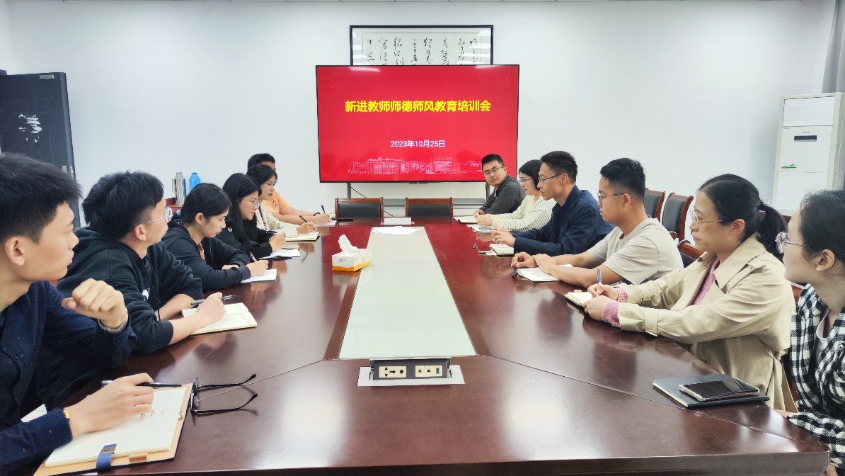 10月25日下午,我院召开新进教师师德师风教育培训会,学院新进教师参加培训,专职纪检委员宋健康主持培训会。