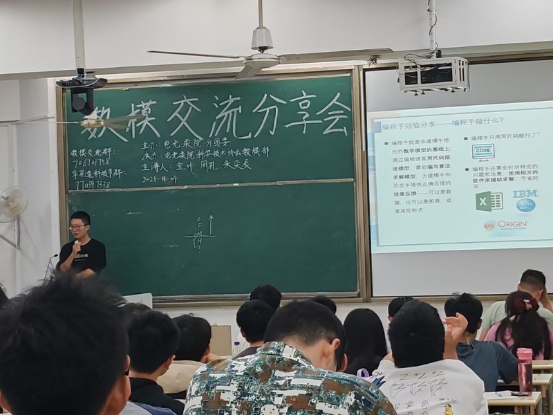 三位同学从论文撰写、建模、编程等多个方面逐一讲解如何在参加数模中能够取得佳绩。在这次分享会上,他们向大家介绍了他们参加数学建模比赛的经验和心得,并展示他们在两次比赛中的优秀作品,也解答了大家对于数学建模感兴趣的问题。