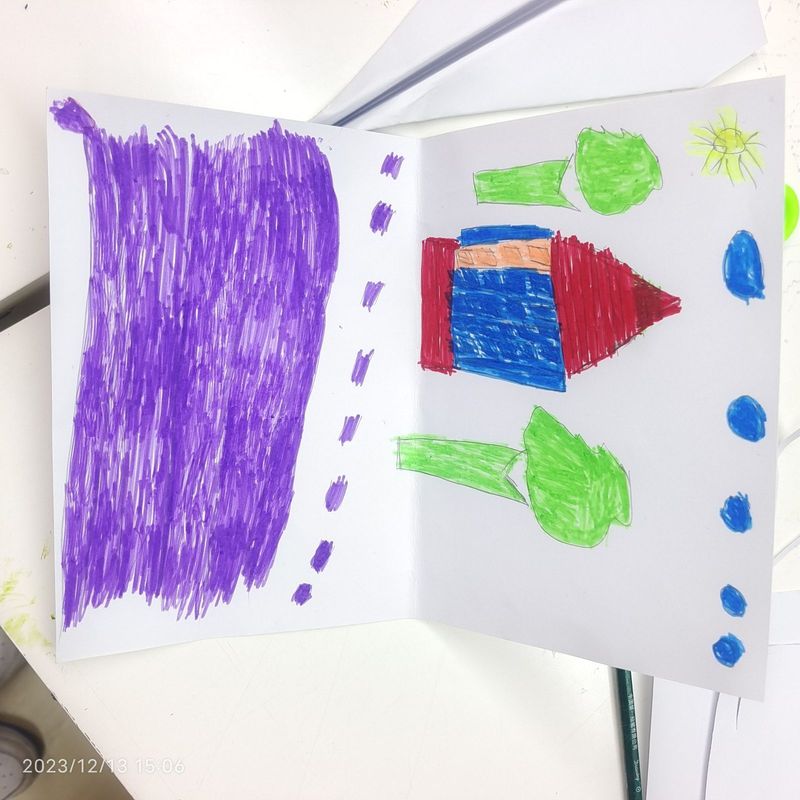 活动伊始,志愿者们在学员的长桌前就坐,主持人就本次活动的主要内容做了简单概述。随后,活动正式开始,第一项“自我介绍”,何学员积极上台,介绍自己的个人信息等,接着又有几位学员上台介绍。紧接着第二项“自由创作”,首先通过观看视频学习如何制作精美的元旦贺卡,然后学员就开始自由创作。学员在志愿者的提示下将纸对折,在折痕的一边拿起铅笔画起了小房子、太阳、云朵、草地等,后又在指导下用彩笔给图画上色,一幅简易的图画就完成了。第三项活动是“主题创作”。针对元旦这一主题,主持人展示了一些可联想的事物,如灯笼、冰糖葫芦、扫尘等,接着学员就开始了的自由绘画。学员在志愿者的指引下在图纸上画起了有握把、有流苏的大灯笼,学员在志愿者的帮助下用剪刀剪下了“2024”的数字,并用胶水将它们粘在了图纸上,彰显年份信息。其他学员也是在志愿者的引领下积极主动地参与了创作。