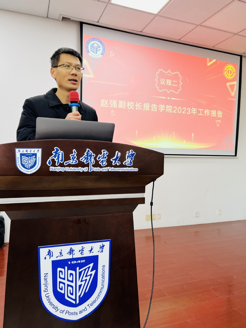 大会在庄严的国歌声中拉开帷幕。会上,赵强副校长做了学院2023年工作报告。他全面回顾了今年学院取得的发展成绩,分别从党的建设、学科建设与研究生培养、师资队伍建设、本科教学与教师能力提升、科研工作、实验室建设、实践创新能力培养、学生工作、工会、关工委等九个方面进行总结,并指出一年来学院深化党建领航、战略引领、人才培养、科技创新和全面开放的特色发展体系,各级领导干部在引领学院发展上当好“领头雁”,在服务广大师生上做好“勤务员”,全院师生站在一起、想在一起、干在一起,不抱怨、乐奉献,一心一意扑在工作上,干出了干事创业的新气象,拼出了奋发超越的精气神,每一位同志都为学院的改革发展作出了不可替代的重要贡献,向付出辛勤汗水的全体师生员工表示崇高的敬意和诚挚的感谢。