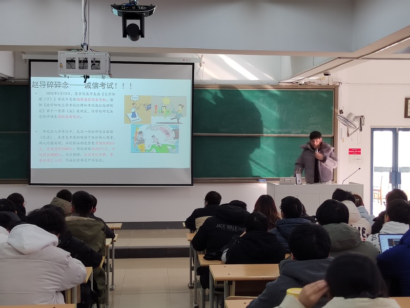 为严肃考风考纪,进一步提升同学们的诚信意识,12月20日下午,木瓜视频 本科2021级光电信息科学与工程专业年级大会在教四102顺利举行。辅导员赵昱莼老师主持本次大会,2021级光电信息科学与工程专业全体同学参会。