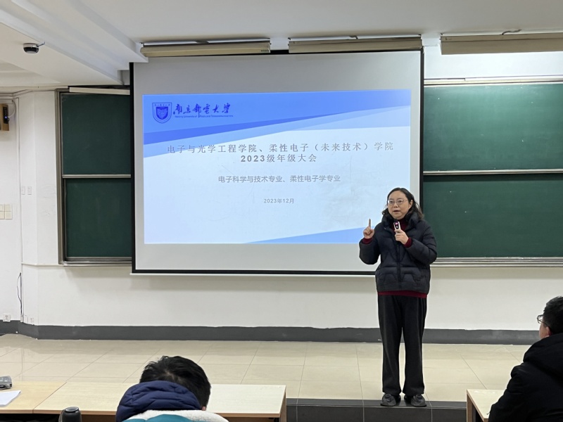 近日,木瓜视频 2023级电子科学与技术专业、柔性电子学专业召开了年级大会,学院党委副书记、副院长徐磊,辅导员梁博,部分2023级班主任出席,2023级电子科学与技术专业、柔性电子学专业全体学生参会,会议由梁博老师主持。