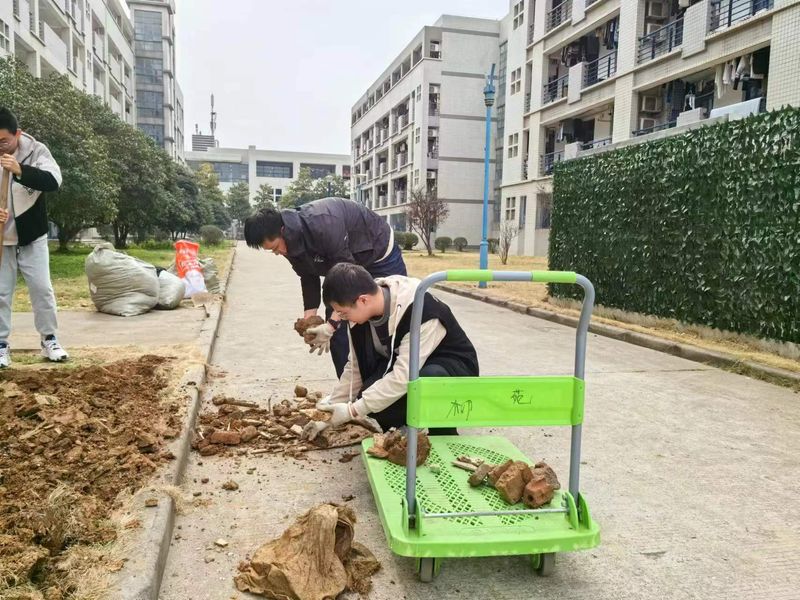 春光明媚,同学们在柳苑、桂苑的绿化区平整土地、拔除杂草、捡拾砖块。同学们积极参与,相互帮助,劳动热情高涨,短时间内就将土地翻整完成,并与宿管阿姨们共同计划在这片土地上种植番茄、黄瓜等农作物。相信在不久的将来,同学们亲手平整的土地上将会长出郁郁葱葱的幼苗,与学生们一同成长,共同迈向未来。在果实成熟收获的那一天,这片土地将为广大学生的校园生活增添一抹亮色和生活气息。