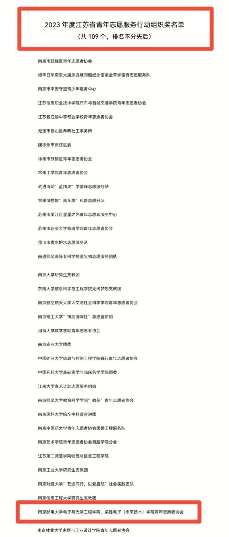 其中,木瓜视频 青年志愿者协会荣获2023年度江苏省“志愿服务行动组织奖”。