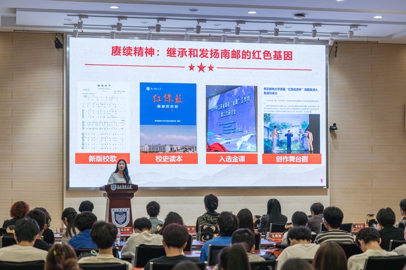 “南邮校史是一部光荣的革命史、奋斗史、报国史,值得每一个南邮人认真学习。”随着南邮关工委老师颜福康和辅导员宣讲团成员吴孙玉笑的讲述,红色校史的序幕缓缓拉开。颜福康老师由“寻根情缘”开篇,深情讲述了南邮发源地的历史、校庆日期的由来。“1942年,南邮的前身——战邮干训班在莒南县东甘霖村诞生。学校四个重要历史节点,都与四月份有着深厚渊源,因此最终确定校庆日是4月20日,这一天成为了南邮人共同的记忆与骄傲。”
