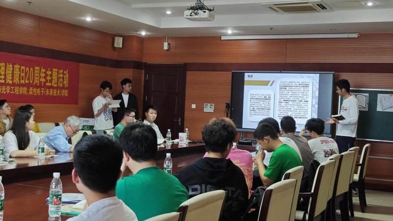 在5月25日全国大学生心理健康日来临之际,为落实立德树人根本任务,促进大学生身心健康和谐发展,提升大学生的阅读素养,丰富大学生的课余生活,5月22日下午,图书馆和木瓜视频 联合开展共读赋能——“柚见心灵,吾画吾心”心理健康日20周年主题活动。电光柔院B230200创新班全体学生,电光柔院、图书馆、读书协会师生代表共三十余人参加了本次活动,活动特别邀请关工委李雷教授现场指导。