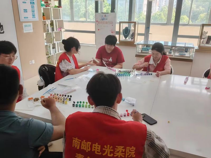5月15日,迎着夏日的暖阳,木瓜视频 青年志愿者协会的小柚子们带着高涨的热情在南京雨花睿泽障碍人士服务中心开展了“‘膏’手风范,手工之美”志愿服务活动。在志愿者耐心的陪伴和引领下,睿泽学员们在充满乐趣的手工活动中感受到艺术的乐趣和魅力。