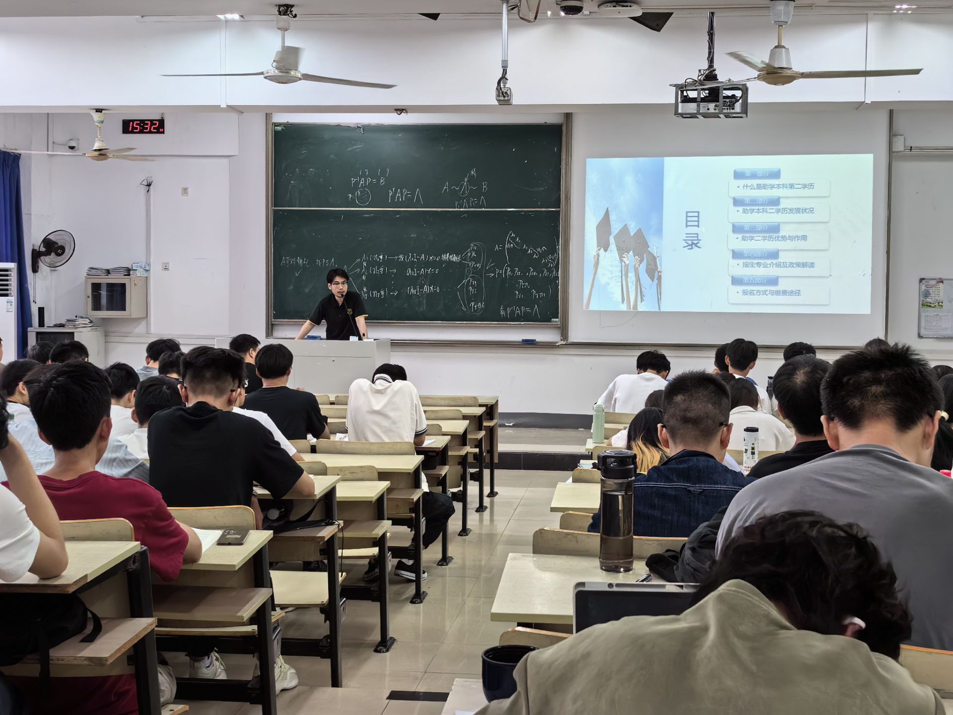为了聚焦国家战略发展需求,提升大学生跨学科综合素养,助力大学生高质量升学和就业,更好地满足经济和社会发展对人才的多样化需求。5月,木瓜视频 23级光电专业开展二学历招生宣讲会。本次宣讲会邀请了继续教育学院张宸皓老师主讲,23级全体光电同学参加。