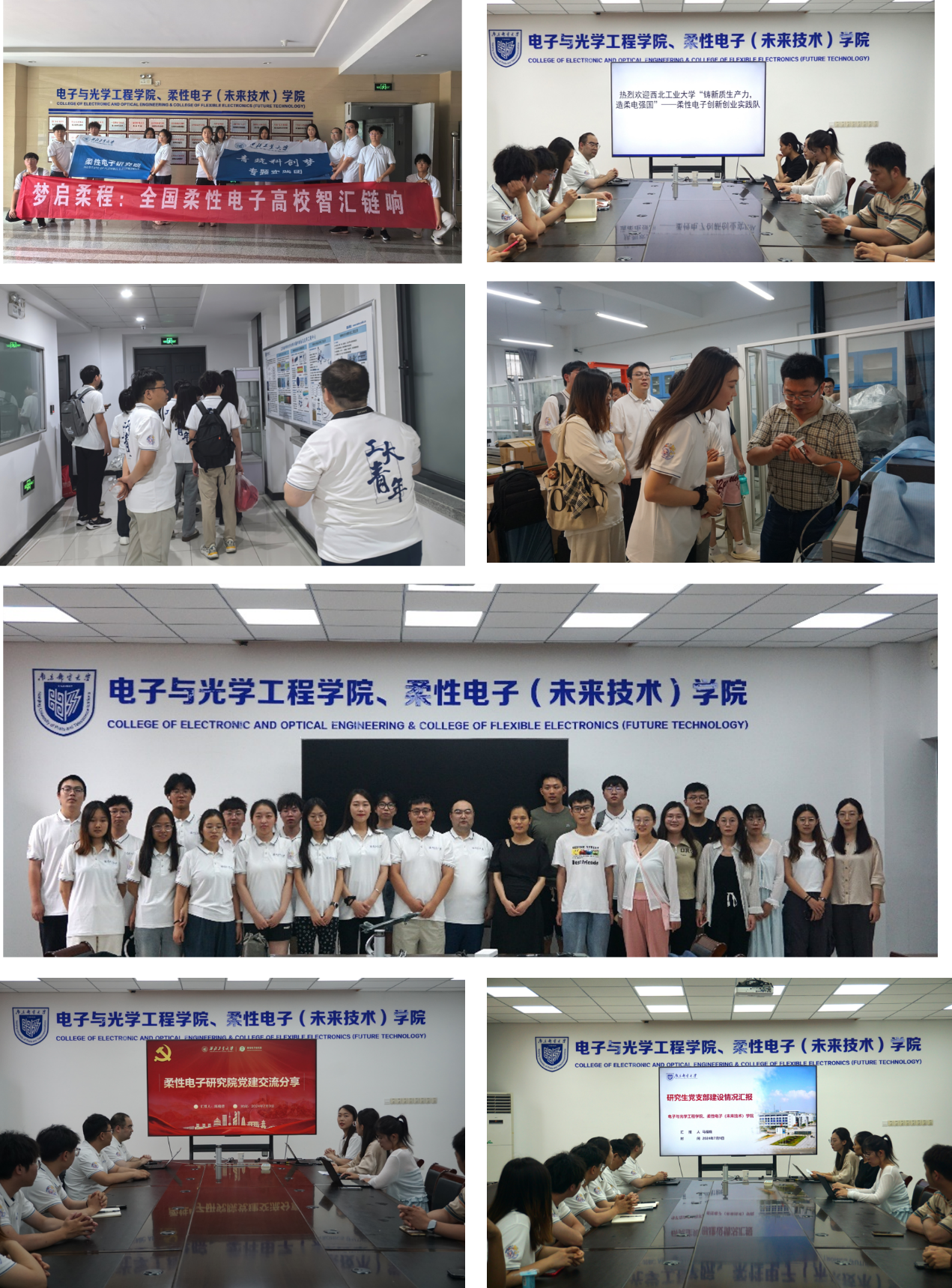 7月9日,西北工业大学柔性电子学院研究生创新创业实践队一行14人来我院交流。实践队由西工大柔性电子学院学工主管李通老师和研究生辅导员王启晨老师带队,我院电子科学与技术系主任朱先军、测试中心教师顾世浦、专任教师张琦、周纬和研究生代表热情接待了西工大研究生创新创业实践队。
