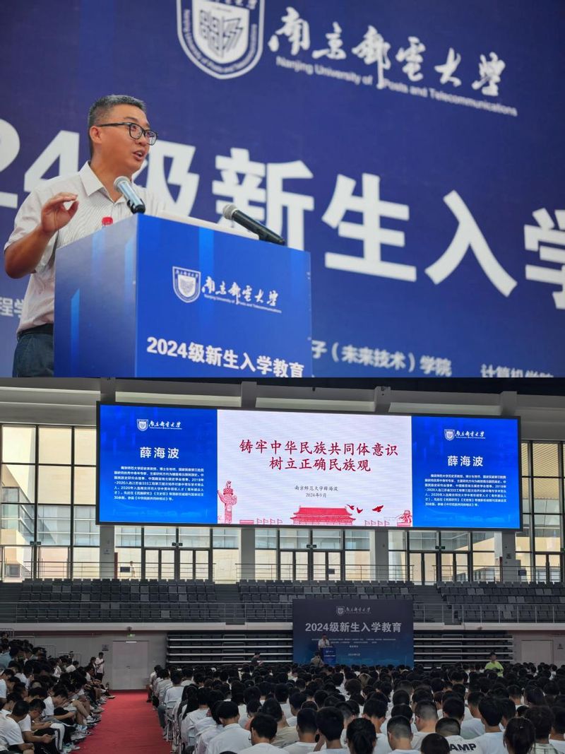 9月8日上午9:30,邀请南京师范大学历史系薛海波教授作《铸牢中华民族共同体意识专题,树立正确民族观》主题思政课报告。薛海波教授以《中华民族共同体概论》为纲要,从四个方面为全体师生进行了专题辅导。一是从现实维度解读了铸牢中华民族共同体意识的提出与重要性,二是从理论维度了中华民族共同体基本概念,三是从发展维度强调了树立正确民族观,四是从历史维度梳理了中华民族共同体形成与发展过程。