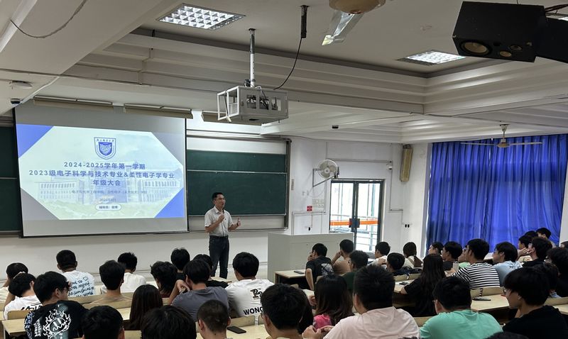 9月11日,木瓜视频 2023级电子科学与技术专业、柔性电子学专业2024-2025学年第一学期期初年级大会在教2-101顺利召开,本次会议由辅导员梁博主持,2023级电子科学与技术专业、柔性电子学专业全体学生积极参会。