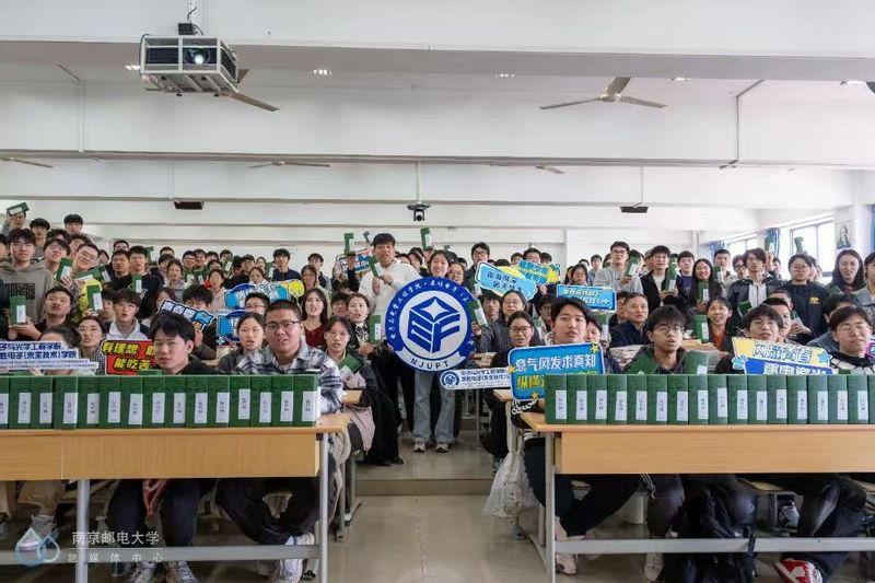讲话结束后,各位领导和老师们一边与同学们亲切交谈,并将南邮定制的桂花糕递给每一位考研学子。最后,全体师生齐聚一堂进行大合影,伴随着电光柔院专属口号“逐电追光,一战成硕!”的喊出,气氛被烘托到了最高潮。