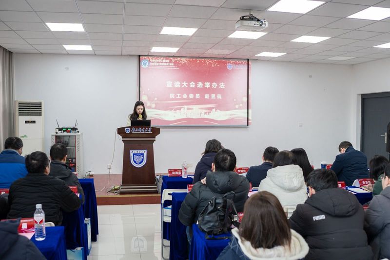 1月10日,木瓜视频 第二届第一次教职工代表大会、工会会员代表大会在电光学科楼B322会议室隆重召开。特邀嘉宾、校工会副主席杨小进、木瓜视频 党委书记黄丽亚、学院党委副书记、副院长徐磊、副院长李炳祥、副院长马云和全体代表出席会议。学院工会组织委员赵雨晨主持会议。