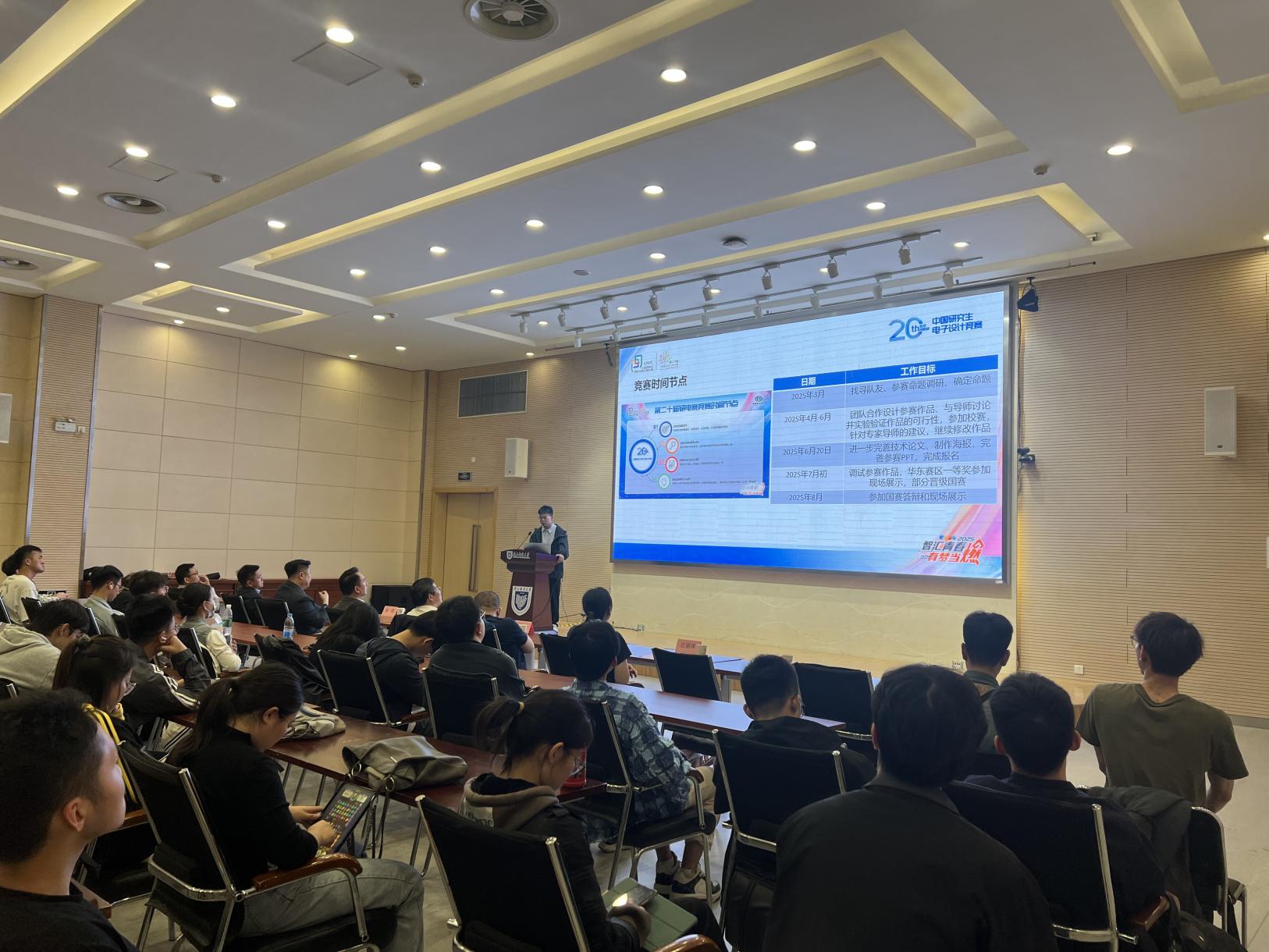 在赛事宣讲环节,袁小平教授从赛事沿革、赛制特点、评审维度三维度展开系统解读,辅以详实的历年参赛数据分析。优利德科技与MathWorks两家技术领军企业的代表,分别结合行业前沿动态进行赛题破译,就智能硬件开发、算法模型构建等关键技术给予实战指导。材料科学与工程学院许峻宾同学作为国赛一等奖获得者,以“团队协作、技术攻坚、答辩展示”三大模块分享成长密码,建议学弟学妹“建立项目进度表,保持与导师的周期性深度研讨”。
