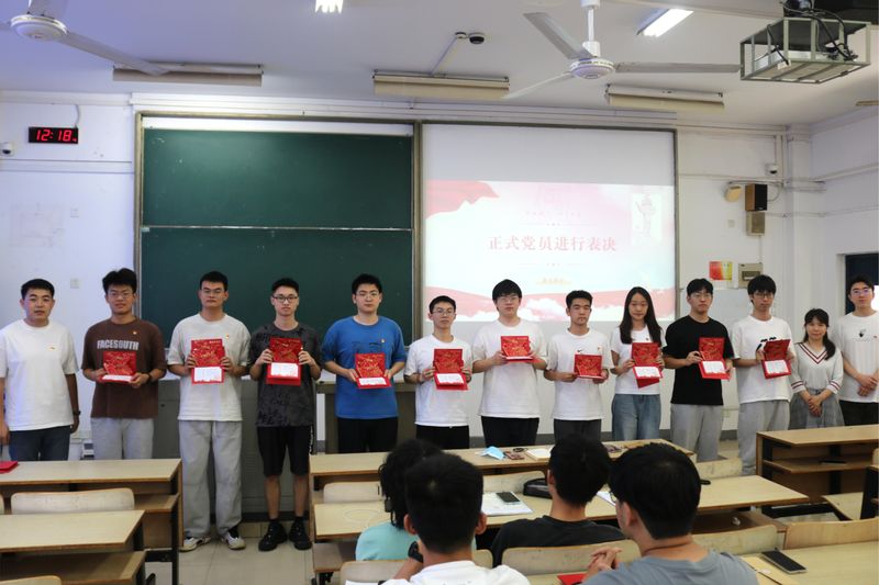 近日,木瓜视频 本科生第二党支部召开预备党员转正大会。大会由党支部书记强增寿主持。会议在庄严的国歌声中拉开帷幕。申请转正的预备党员依次汇报预备期内思想、学习、工作等方面表现,全面总结成绩与不足。入党介绍人对预备党员们的表现给予客观公正的评价,认为他们在预备期内能够自觉加强政治理论学习,工作上勤奋务实、勇于担当,生活中严于律己,能够做到以党员的标准严格要求自己,考察期间表现优秀。其他正式党员一一发表意见,对20位预备党员进行评价。经无记名投票表决,决定20位预备党员按期转正。