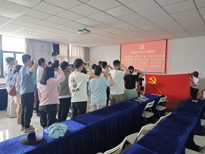 活动第二阶段:学研宣誓固初心。首先,全体党员共同观看了《科技报国先锋》纪录片《杨士莪:为国“听海”》,通过视频浸润的方式,深刻感受了科技工作者为国家奉献的崇高精神。随后,师生跨界研讨科研难题,旨在凝聚创新共识、强化育人使命与科研报国担当。最后,在科教融合党支部书记李双德的带领下,全体党员面向党旗庄严宣誓,重温入党誓词,以铮铮誓言表达对党的忠诚与热爱,更是对初心使命的再次叩问与对党的纪律规矩的庄严承诺。