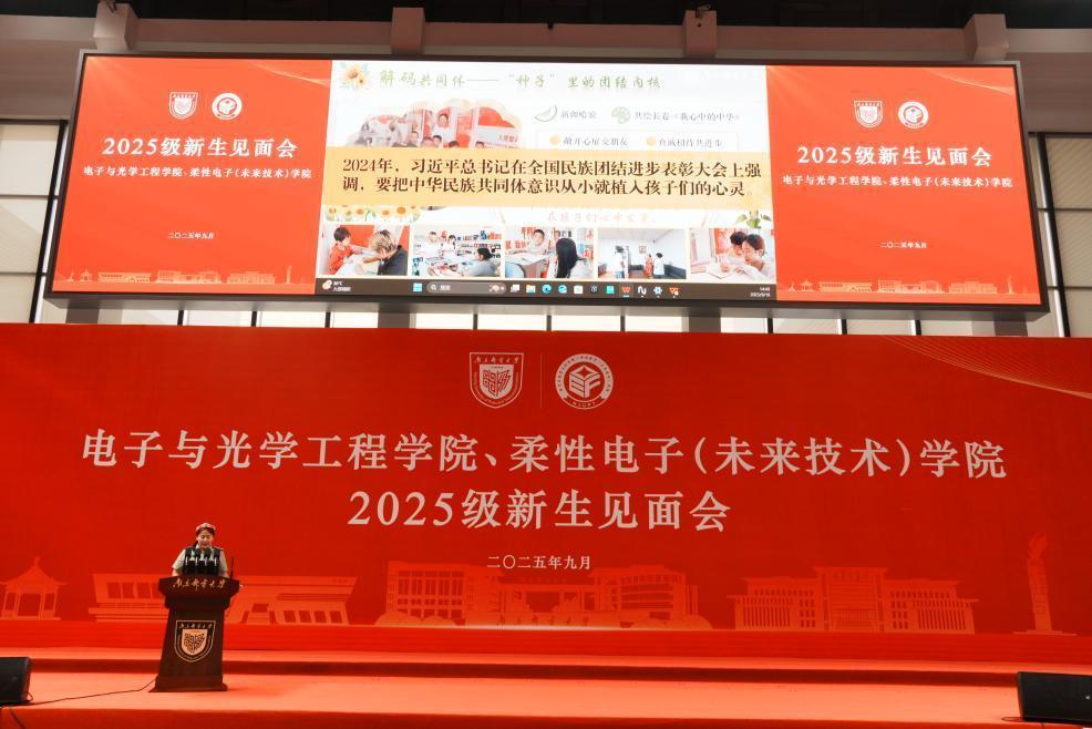 会上,黄丽亚书记首先代表学院全体师生员工,向2025级新生们的到来表示热烈欢迎!向辛勤培育他们的家长们、老师们表示最衷心的感谢!她向新生们介绍了学院的基本情况和学院师生近年来取得的各项学术创新成果,并寄语新生:学会“做人”,学会“独立”,学会“珍惜”,树立正确的世界观、人生观和价值观,领悟“厚德 弘毅 求实 笃行”的真谛,在中国式现代化建设生动实践中挺膺担当,书写无悔青春的奋斗篇章。