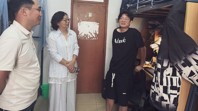 暑期,校党委书记郭宇锋,校党委常委、副校长姜小舜,院党委副书记徐磊及相关职能部门领导、学院辅导员,深入学院学生寝室,关心学生公寓苑区的住宿环境,了解暑期留校同学在校学习生活情况,实地解决学生在生活中遇到的困难,嘱咐同学们在实践中锻炼能力、拓展视野,同时要注意身体健康,为未来学术道路和事业发展打下坚实基础。走访现场气氛温馨,领导老师们平易近人的态度和语重心长的叮嘱,让在场的同学们倍感温暖与振奋。