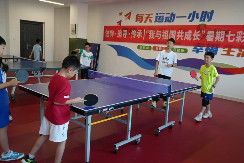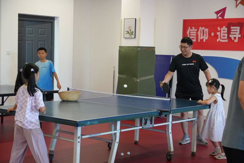 强健体魄模块的“活力燃夏乒乓球运动”火热开展。小朋友们手持球拍,在乒乓球台前尽情挥洒汗水,展现出蓬勃的朝气。尽管他们年龄不同,但动作有板有眼,发球、接球、扣杀等动作娴熟流畅。乒乓球运动不仅锻炼了小朋友们的身体,还培养了他们的竞争意识和团队合作精神,让他们在运动中收获快乐与成长。
